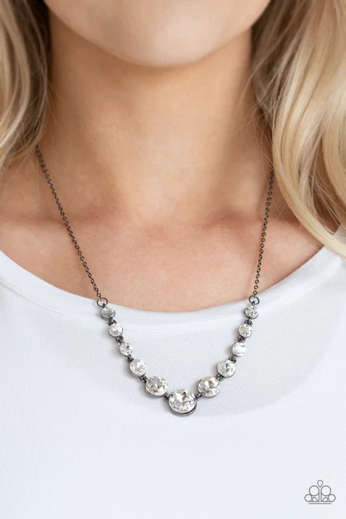 Gradually increasing in size near the center, a collection of glassy white rhinestones links below the collar for a timeless look. Features an adjustable clasp closure.