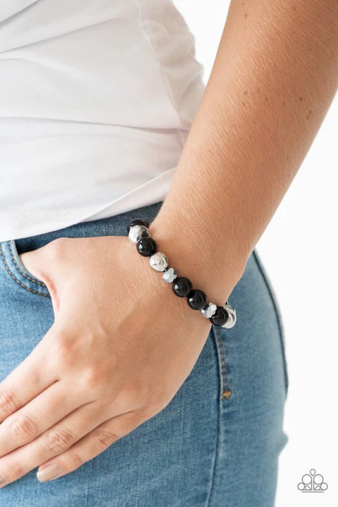 A collection of polished black, classic silver, and crystal-like hematite beads are threaded along a stretchy band, creating a refined look around the wrist. Sold as one individual bracelet.